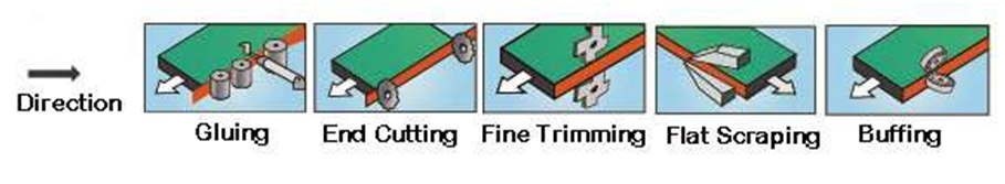 Автоматический 5-ти операционный кромко-облицовочный станок проходного типа.