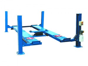 Подъемник платформенный 4-х стоечный электрогидравлический. Грузоподъемность 4,5 т. Платформы под сход-развал с углублениями под поворотные круги, и задними сдвижными площадками, заездными трапами. Свободный доступ к нижней части а/м (конструкция с разрезной передней балкой). Опционально комплектуется поворотными кругами и траверсой для вывешивания колес. Предназначен для подъёма легковых автомобилей, лёгких грузовиков и микроавтобусов массой до 4,5 т, в процессе осуществления технического обслуживания и ремонта, а также при проведении измерений и регулировки углов установки колес (сход–развал). Специальная конструкция c разрезной передней балкой обеспечивает легкий доступ к нижней части автомобиля. Система подъема стальными тросами. Двухкамерный гидравлический цилиндр. Пневмомеханическая запирающая система. Задние компенсационные площадки. Передние углубления под поворотные круги. Траверса и поворотные круги в качестве опций. Фронтальные и задние противоскатные устройства.