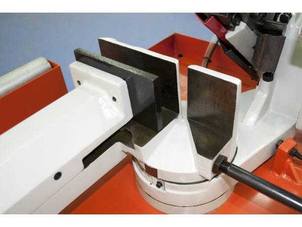 Тиски с системой быстрого отвода ускоряют процесс смены заготовки (ускоренный отвод подвижной губки происходит без вращения маховика). Зажим заготовки осуществляется тисками вручную, подача заготовки - также вручную. Наличие система СОЖ в стандартной комплектации - позволяет добиться высокой производительности.