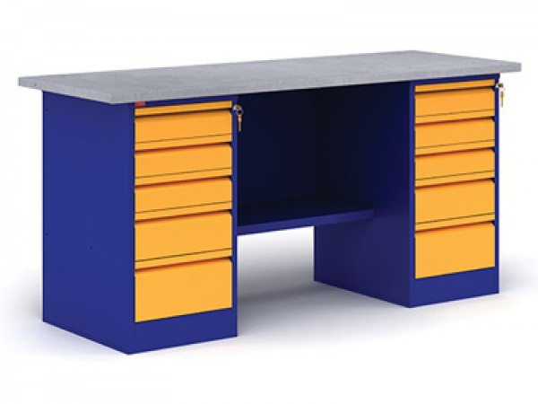 Металлический двухтумбовый верстак с тумбой и драйвером вп - 6