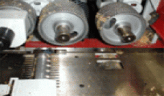 На выходе заготовку протаскивают две пары высокопрочных полиуретановых роликов, не позволяющие повредить заготовку, и нижние приводные гладкие ролики. Обеспечивается высокое качество обработанной поверхности.