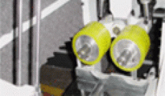Специально разработанный механизм подачи коротких заготовок позволяет обрабатывать заготовки длиной от 180 мм при подаче торец в торец и от 250 мм при подаче одной заготовки. Поворотный механизм обеспечивает свободный доступ к правому шпинделю для смены инструмента.