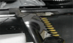 Нижний конвейер обеспечивает надежное базирование заготовок во время обработки. Нижние базирующие башмачки изготовлены из специального износостойкого материала с вставками из прочной и эластичной резины, исключающие соскальзывание и перекос заготовок.
