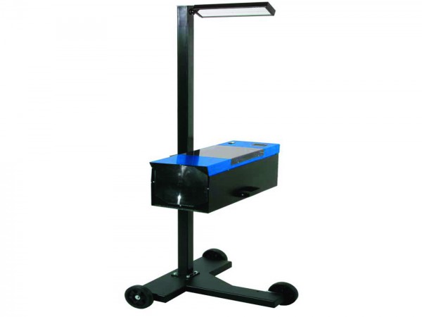 9. Устанавливается на вертикальную мобильную стойку с тремя прорезиненными колесами; переднее колесо оснащено эксцентриком для регулировки положения прибора по отношению к горизонту