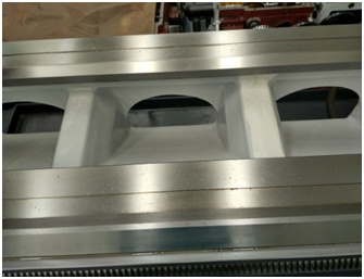 Цельнолитая станина усилена ребрами жесткости. Применение широких направляющих позволяет обрабатывать тяжелые заготовки и делать съем до 5 мм на сторону без потери точности и качества получаемого изделия.