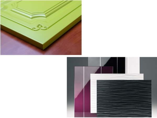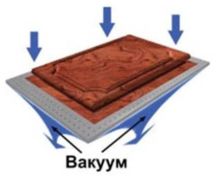 При облицовке используется нагрев, вакуумная технология и подача воздуха под давлением. Возможна комбинированная отделка поверхности с одновременным использованием пленок и термопереводной печати, что обеспечивает полную и достоверную имитацию двери любого размера, склеенной из рамки и филенки, с декоративным украшением - без применения специально напечатанных пленок.